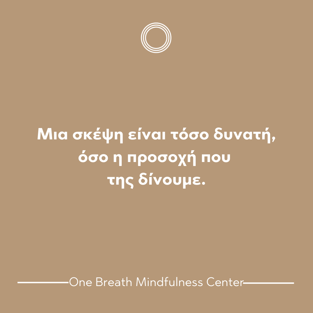 Και να επιλέγουμε πού θα εστιάσουμε. Μια σκέψη μπορεί να είναι μόνο τόσο δυνατή και "πιστευτή", όσο η προσοχή που της δίνουμε.